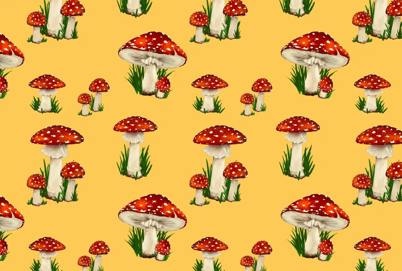 • Repeatable Pattern: A whimsical mushroom motif designed for horizontal repetition.